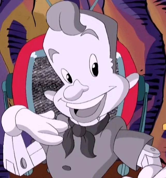 Dangly Deever was the star of his old children's television series from long ago, where he encouraged children to perform good deeds. When Sam and Max messed with The Geek's modified television experiment, they accidentally brought Dangly into the real world. At first, he was fascinated by the idea of being in the future, but became saddened when he saw how unfriendly the world became -thinking he had no purpose. However, he got his chance to prove himself when he saved The Geek from being threatened by his evil counterpart, Deadly Dangly Deever. He then had The Geek zap them both into his show, knowing that that's where he truly belongs.