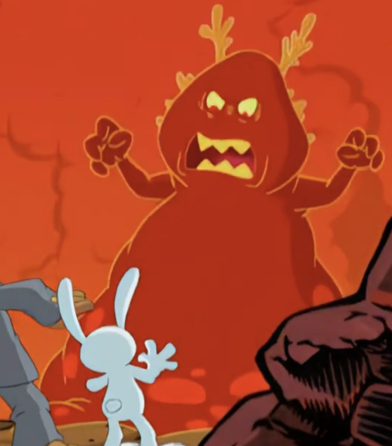 A monster resembling Domasadito appears in a montage during the Series Finale of the Animated Series, where it ends up eating Sam and Max whole. Fortunately, they escaped by bursting through its stomach.