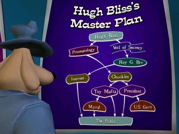 Hugh Bliss's Master Plan explains most of the plot of Sam & Max: Save The World. A poster of it appears as an object in-game.