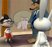 Max is Sam's long-time best friend and sidekick. They met as children and attended junior high together before becoming the Freelance Police. In most situations, Sam plays the straight man against Max's chaotic behavior. Sam is incredibly close to Max and will become tangibly uncomfortable when separated for any reason; he is willing to delve into great lengths to protect his little buddy. Unlike most people, Sam seems to admire Max's violent tendencies, for the most part.