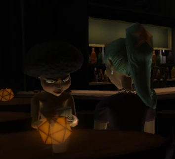 While entering the room in Poker Night, Ms. Bosco and Girl Stinky can be seen sitting at a table, using their phones.
