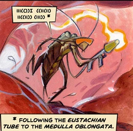 When Nigel the Hook has Sam unconscious with a colony of insects growing in his head, Sir Kenneth Blattodea arrives on the scene and goes into Sam's head to clear the pests out. He holds his own against the bugs, but they overpower him, so he sets off a detonator that blows the bugs up -along with supposedly himself. He is presumed dead, but his sacrifice saves Sam's life.