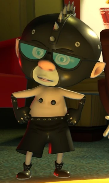 In the final episode, Sam & Max 205: What's New Beelzebub?, The Soda Poppers are the "Rulers of Hell" and Specs is obviously the leader of the group. He gives the orders and doesn't hesitate to slap Peepers when he sees that he is picking his nose. Later, he challenges Chippy to a music competition by playing the violin. His goal is to win the soul of a computer but he loses, even if he does not care about the loss. In his demon form, he wears a spiky gimp mask covering almost all of his face, wearing his glasses over it. He is shirtless with spiky nipple tassels and black shorts, gloves and shoes. He is defeated when Sam brings them a cake and the three of them blow out the candles. Specs, along with his brothers, falls into the pit of hell and seemingly dies while melting in the lava. He is the last one to die.