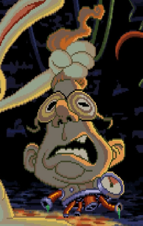 The mad scientist is a rather deranged, intelligent man that went on a lunchdate three times with The Date. He seemingly lied to her as she thought he was an ordinary doctor. He was visibly angry that she wanted to just be friends with him, causing him to kidnap her and wanting to destroy her. His plans were ruined by the Freelance Police, who were lost. Max proceeds to pummel the scientist to death, which reveals that the scientist was a machine all along, his head being a bomb.